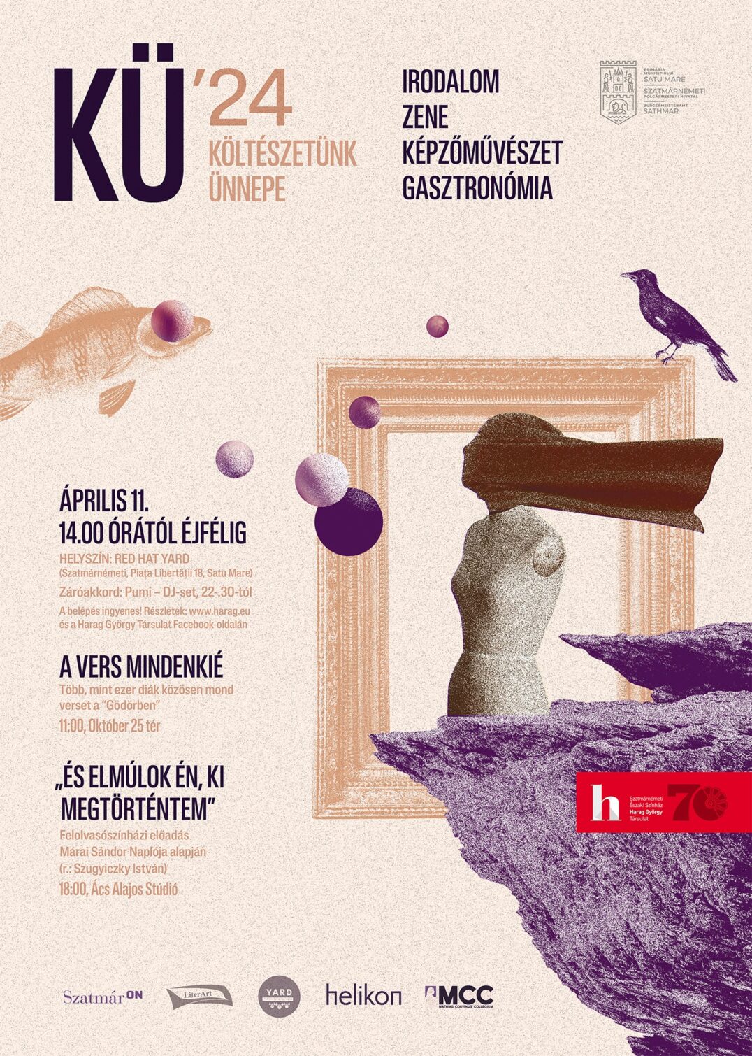 Április 11-én, csütörtökön a Magyar Költészet Napja alkalmából a Harag György Társulat ünnepi rendezvénysorozattal készül. A Költészetünk Ünnepe rendezvényre a Red Hat Yarban kerül sor, melynek programja az alábbiakban olvasható: