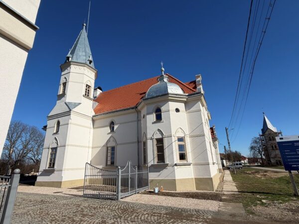 A kúria keleti oldalát két, a két végén elhelyezkedő rizalit hangsúlyozza. A déli végén található valójában az épülettest, amely a homlokzatvonaltól hátrébb van helyezve. Ennek keleti oldalán egyetlen neogótikus ablak nyílik, amely felett található a csúcsíves záródású kis ablak. Az oldal északi végén található második rizalitot két, a többinél keskenyebb és közelebb elhelyezett neogótikus ablak világítja meg. Felettük egy kis kerek ablak, egy profilkeretes okulus található. Ezt az épülettestet egy fémlemezzel borított kupola fedi, tetején egy gömbbel és egy fém zászlócskával.